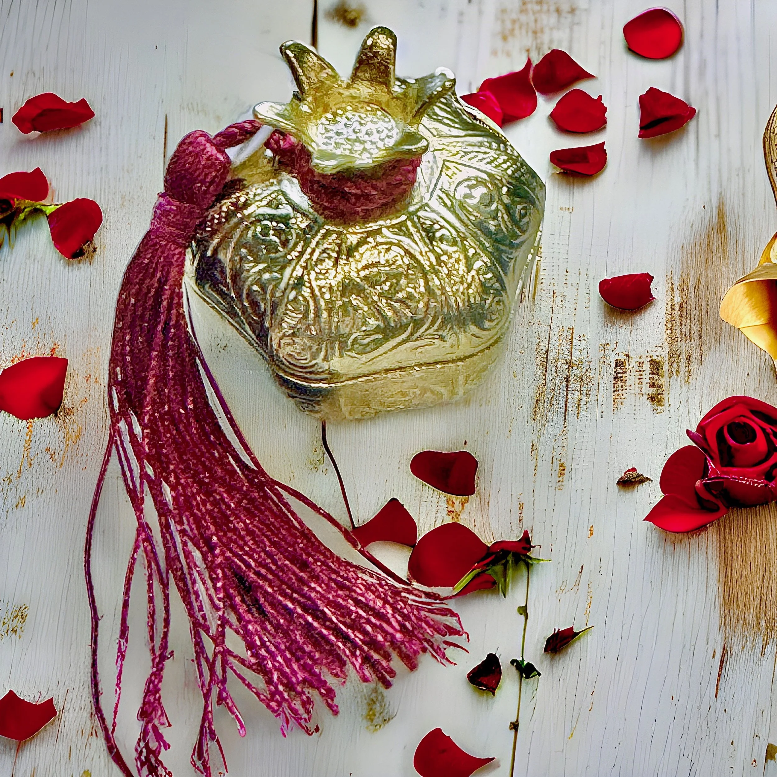 This devotional is actually bracelet sized. We created it to honor and interact with Persephone, Hades’ solemn Queen of the Underworld, whose return to the world above heralds Spring.